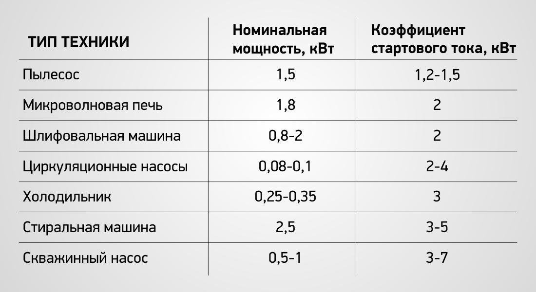 Не забудьте учесть коэффициент пускового тока. При пуске некоторых потребителей электроэнергии, например своженный насос, холодильник они потребляют большую мощность.