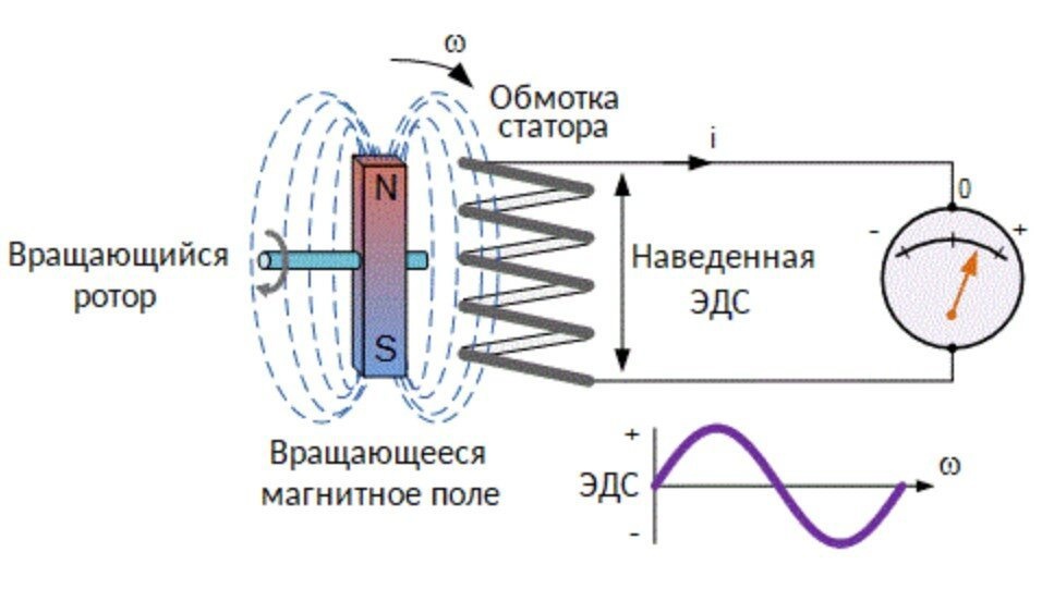 Принцип работы основан на явлении электромагнитной индукции. Изменяющийся магнитный поток запускает процесс индуцирования вокруг этого пространства электрического поля.